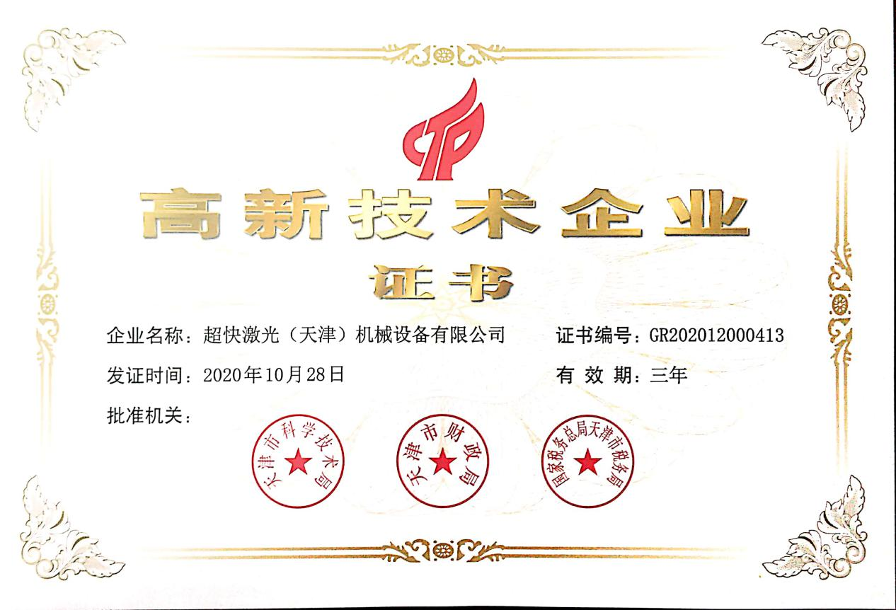 超快激光擁有一支專業(yè)從事激光切割設(shè)備研發(fā)設(shè)計(jì)的強(qiáng)大技術(shù)團(tuán)隊(duì),獲得多項(xiàng)實(shí)用型設(shè)計(jì)專利,已通過ISO9001質(zhì)量管理體系認(rèn)證證書,并且獲得國家頒發(fā)的高新技術(shù)企業(yè)證書。